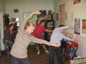 В занятия включены: — разминка для разработки суставов, — упражнения для укрепления глазных мышц, — дыхательная гимнастика. — медитации на расслабление и т.д.