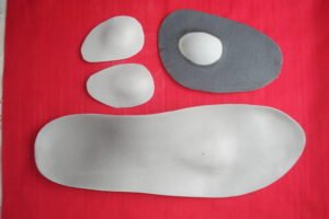 Ортопедическое приспособление для коррекции и поддержки поперечного свода стопы, может быть трёх видов: маленький (непосредственно сам корректор), в форме запятой (немного изгибается к продольному своду), и большой (маленький корректор, «посаженный» на полустельку).